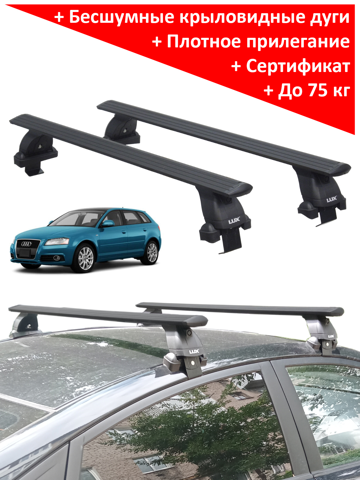 Автобагажник на крышу автомобиля Audi A3 (хэтчбек, 2003-2012) - Lux (Россия), крыловидные дуги черного цвета (аэро-трэвэл 82 мм). Грузоподъемность до 75 кг