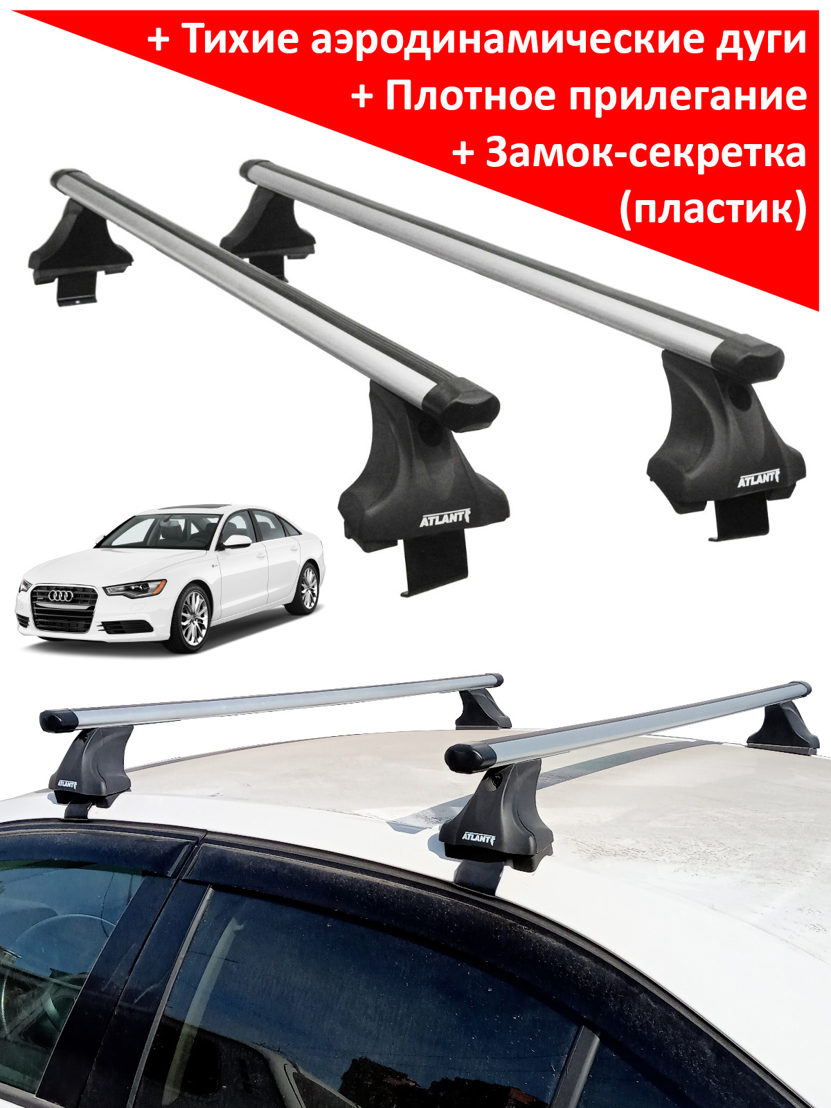 Багажник на крышу Audi A6 IV (C7) 2011-2018, Атлант, аэродинамические дуги Эконом, опора Е