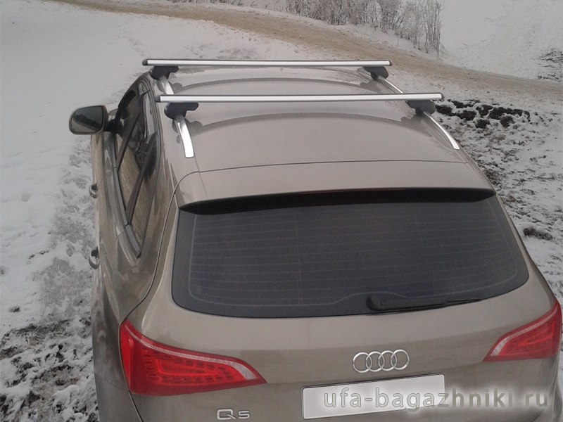 Автобагажник на интегрированные рейлинги Audi Q5 (SUV 2008-...), Атлант (Россия), с аэродинамическими дугами. Грузоподъемность до 75 кг (до 120 кг распределенной нагрузки).