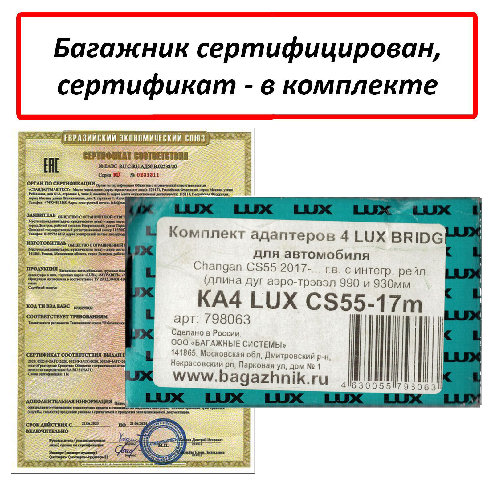 Установка багажника на интегрированные рейлинги производится согласно прилагаемой инструкции. Купить багажник на Changan CS55 марки Lux вы можете в нашем интернет-магазине "Багажники". Доставка по России.