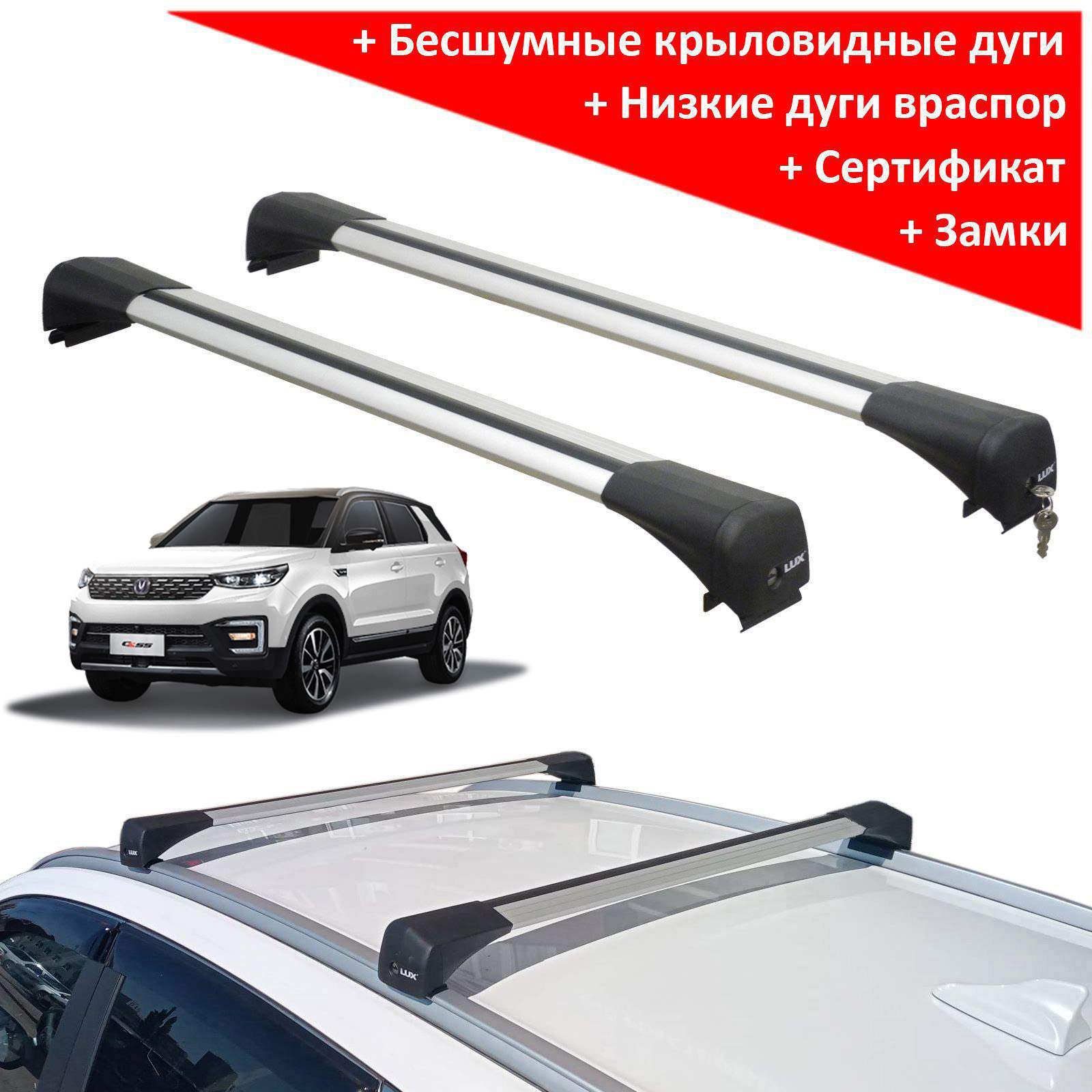 Багажник на крышу Changan CS55 (2017-...), Lux Bridge, крыловидные дуги (серебристый цвет)