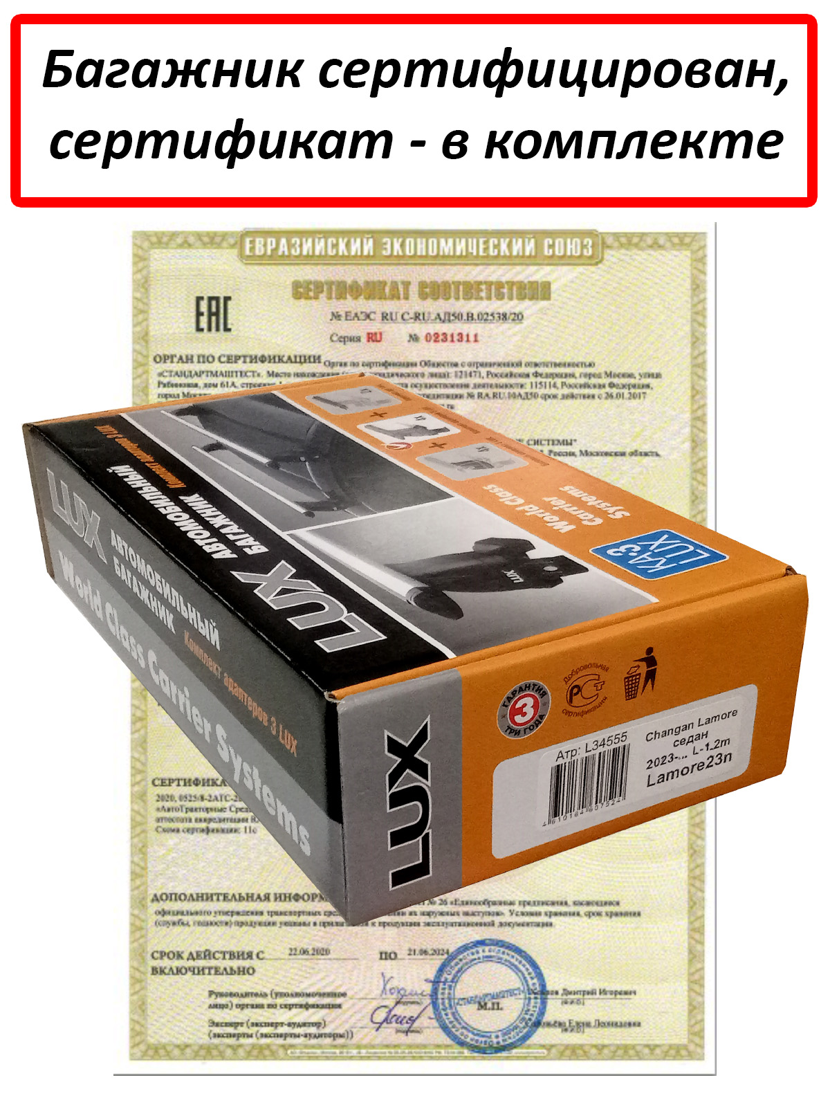 Представляем багажную систему Lux City на крышу Changan Lamore (седан, 2023-...) от российского производителя - марки "Lux". Цвет дуг - серебристый.