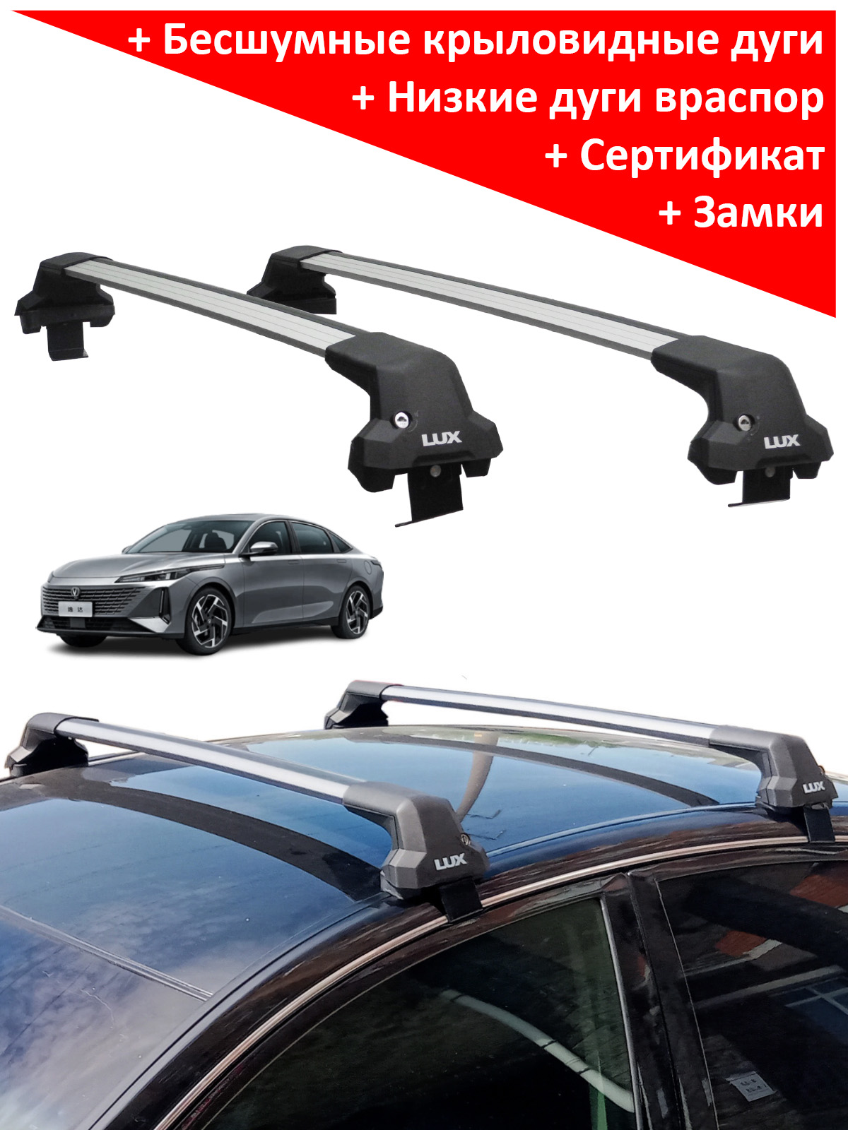 Багажник на крышу Changan Lamore (седан, 2023-...), Lux City (без выступов), с замком, серебристые крыловидные дуги