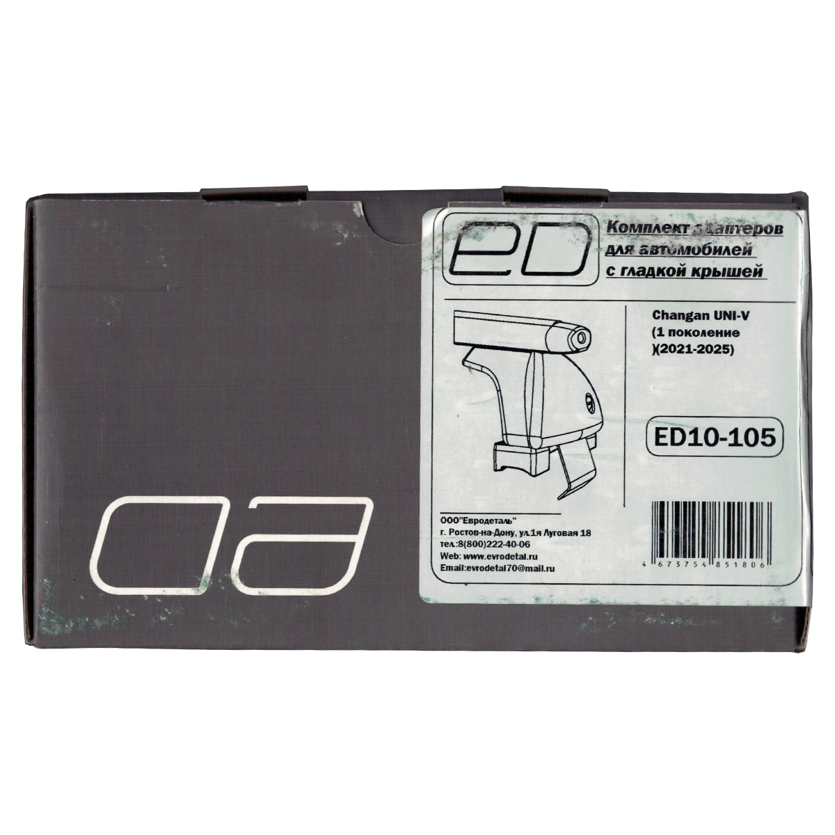 Багажная система ЕД состоит из трех основных частей: дуг, опор и адаптеров. Дуги изготовлены из стального прямоугольного профиля 20х30 мм, их длина - 1250 мм, поверх дуги имеется рельефная пластиковая оболочка черного цвета. Концы дуг закрываются парой заглушек. Дуги опираются на 4 стойки, производимые из прочного пластика. Крышки плотно закрываются на пластиковый замок (Дополнительная опция - металлические замки). Фиксация на крыше производится с помощью системы адаптеров за дверной проём.