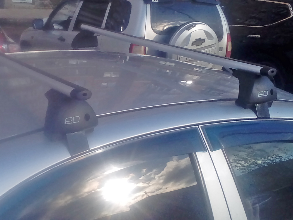 Автобагажник на крышу автомобиля Chevrolet Aveo 2002-11 sedan/hatchback - Евродеталь (Россия), аэродинамические дуги. Грузоподъемность до 75 кг