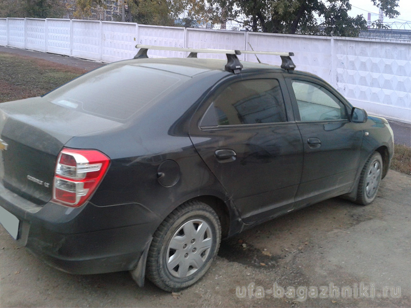 Автобагажник на крышу Chevrolet Cobalt, Атлант (Россия), с прямоугольными дугами и опорами типа E. Крепление за дверной проем. Грузоподъемность до 75 кг (до 100 кг распределенной нагрузки)