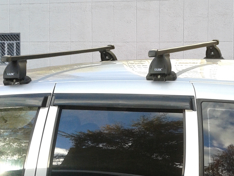 Багажная система Lux - это простая, но надежная конструкция, состоящая из трех основных частей: дуг, опор и адаптеров. Дуги изготовлены из стального прямоугольного профиля 20х30 мм, их длина - 1300 мм, поверх дуги имеется рельефная пластиковая оболочка черного цвета. Концы дуг закрываются парой заглушек. Дуги опираются на 4 стойки, производимые из прочного пластика. Фиксация на крыше производится с помощью системы адаптеров за дверной проём, при этом используются штатные отверстия (в комплекте присутствует набор болтов).