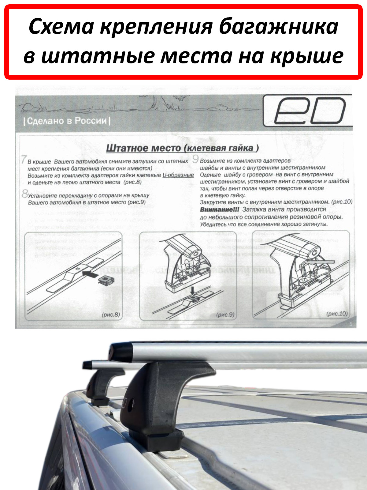 Багажная система ЕД - это простая, но надежная конструкция, состоящая из трех основных частей: дуг, опор и адаптеров. Профиль дуги - аэродинамический, материал - анодированный алюминий, цвет - серебристый, длина 1350 мм. Поверх дуги проходит Т-образный профиль, предназначение которого - легкая и быстрая установка дополнительного оборудования - велокреплений, лыжный насадок. В свободном состоянии Т-профиль закрывается черным резиновым уплотнителем. На концах дуг располагается пара заглушек. Дуги опираются на 4 стойки, производимые из прочного пластика. Крышки плотно закрываются на пластиковый замок (Дополнительная опция - металлические замки). Фиксация на крыше производится с помощью системы адаптеров в штатные места.