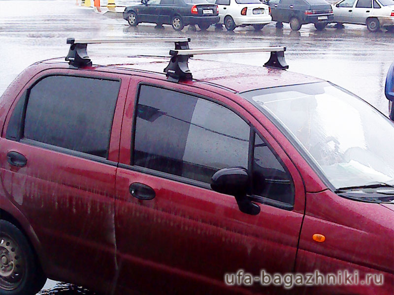 Автобагажник на крышу Daewoo Matiz, Атлант (Россия), с прямоугольными дугами. Грузоподъемность до 75 кг (до 100 кг распределенной нагрузки).