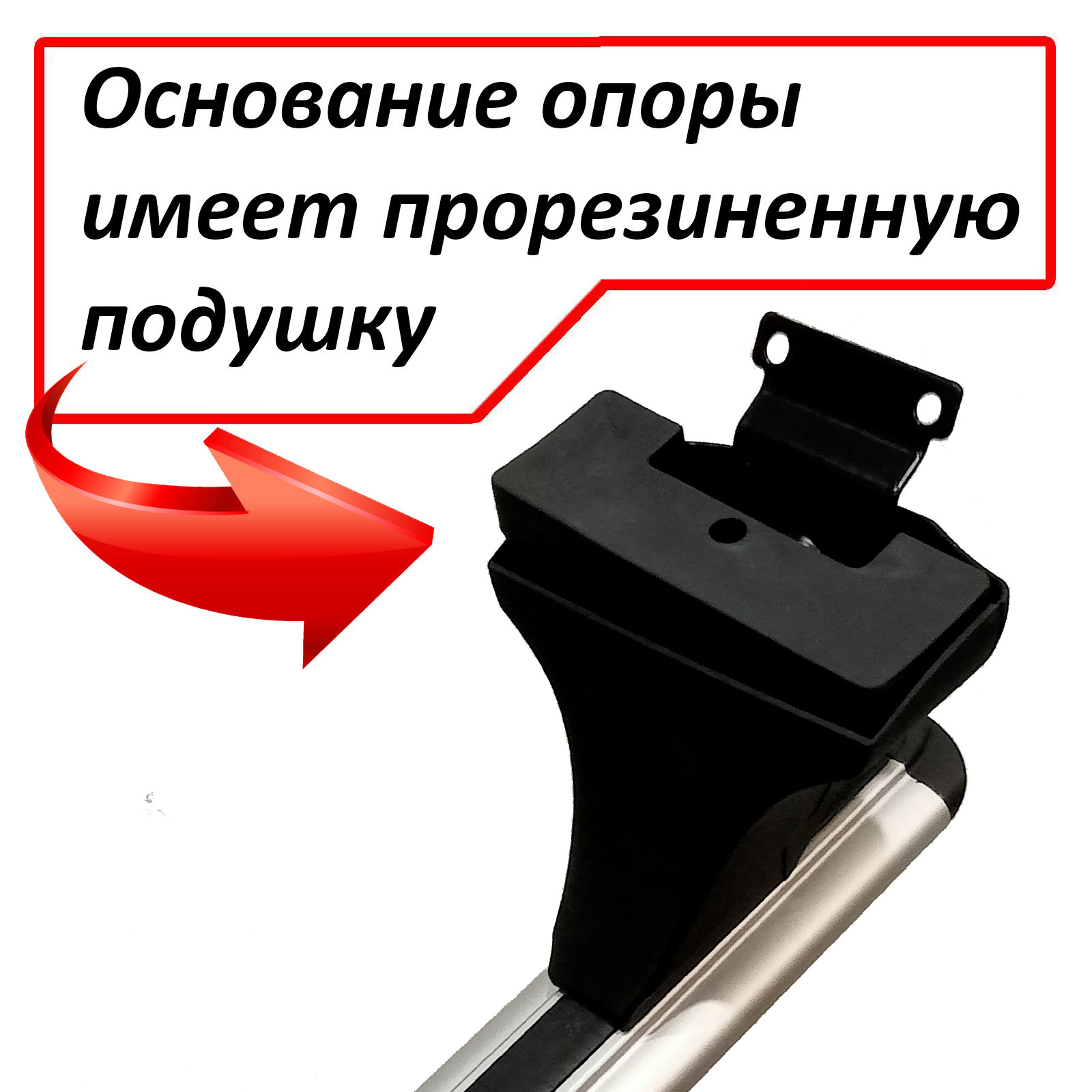 В основе представленной багажной системы - 2 поперечные дуги аэродинамического профиля длиной 110 см. В верхней части они имеют Т-образный слот для вставки специальных насадок под лыжи и/или велосипеды. В свободном состоянии Т-слот закрывается резиновой прокладкой чёрного цвета. Дуги ставятся на опоры типа Е - прочные стойки оригинальной конструкции с повышенными аэродинамическими характеристиками. Каждая опора имеет крышку, запирающую корпус стойки на пластиковый замок. Опоры соприкасаются с крыше посредством резиновых подушек, точно повторяющих контур крыши. Фиксация всей конструкции на крыше производится с помощью специальных прижимов с использованием штатных отверстий, расположенных под резиновой прокладкой вдоль дверных проемов автомобиля.
