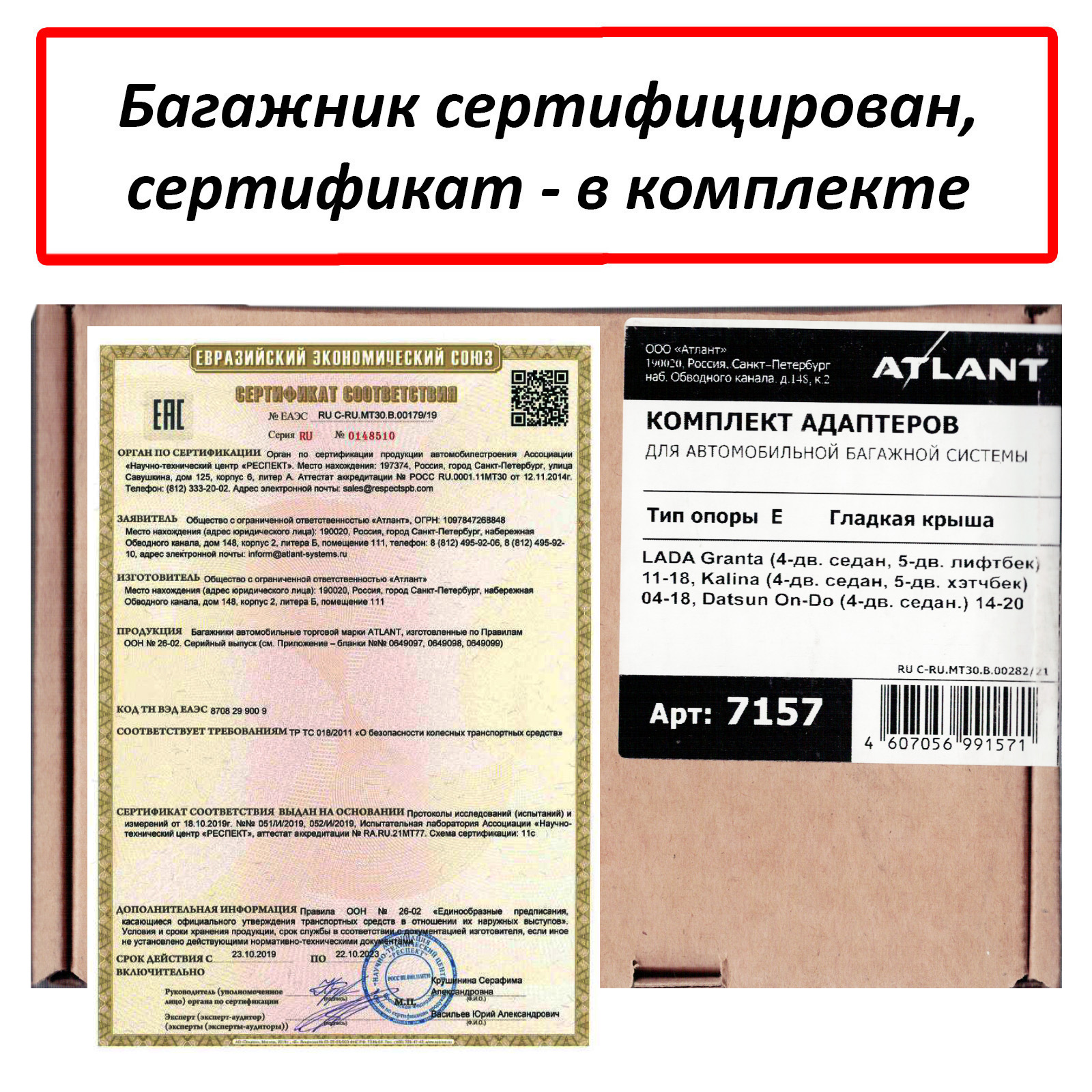 Автобагажник на крышу Datsun On-Do, Атлант, с прямоугольными дугами и опорами типа Е. Грузоподъемность до 75 кг (до 100 кг распределенной нагрузки)