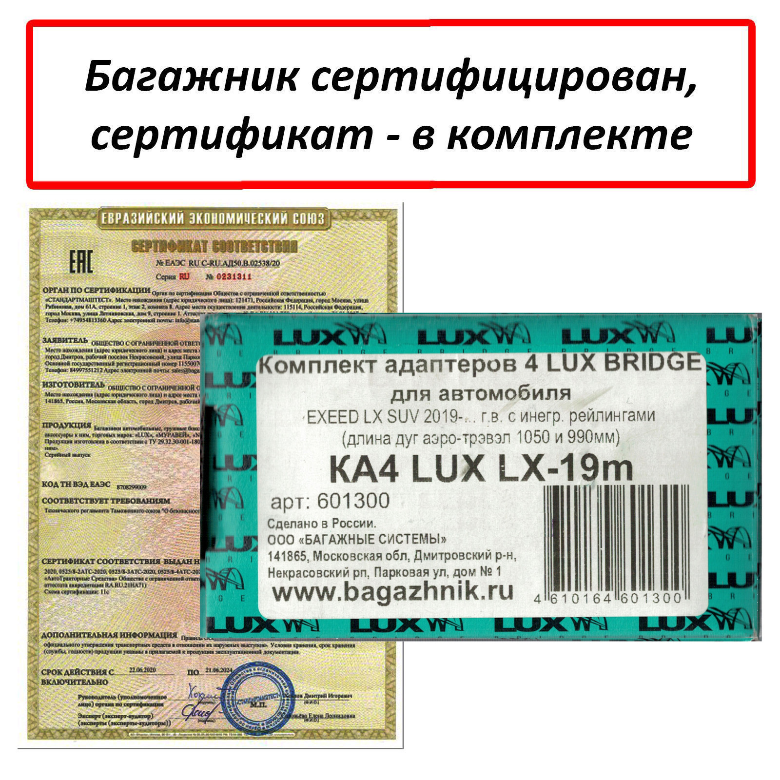Багажник на крышу Exeed LX (2019-...), Lux Bridge, крыловидные дуги (черный цвет)