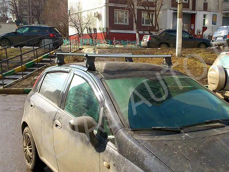 Автобагажник на крышу Fiat Punto c 2005 г. (Fiat Grande Punto), Атлант (Россия), с аэродинамическими дугами. Грузоподъемность до 75 кг (до 120 кг распределенной нагрузки)