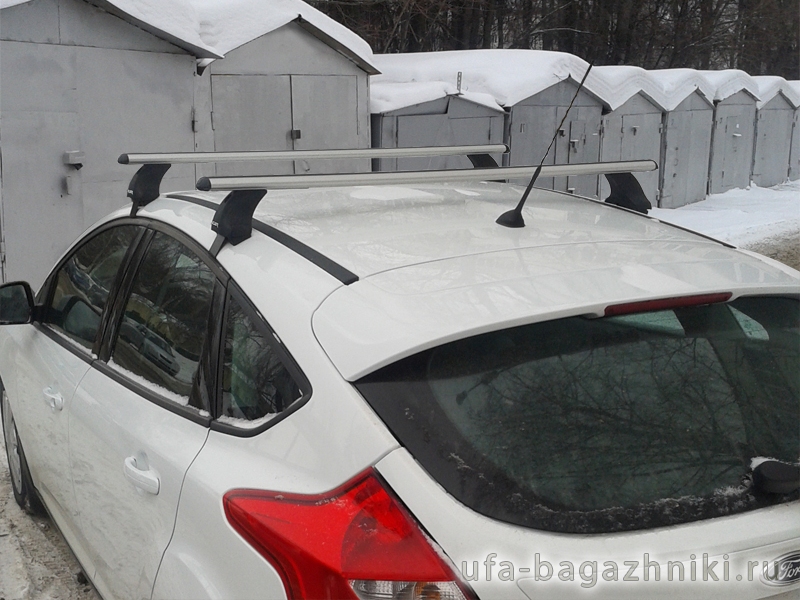 Автобагажник на крышу Ford Focus 3, sedan/hatchback, Атлант (Россия), с аэродинамическими дугами и аэродинамическими опорами типа E. Грузоподъемность до 75 кг (до 120 кг распределенной нагрузки)