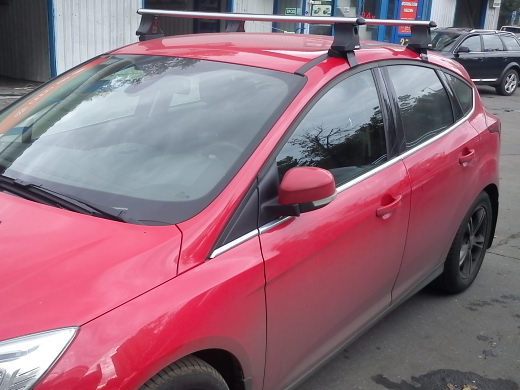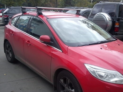 Автобагажник Атлант (Россия) на крышу Ford Focus 3 sedan/hatchback, с аэродинамическими дугами. Грузоподъемность до 75 кг (до 120 кг распределенной нагрузки)