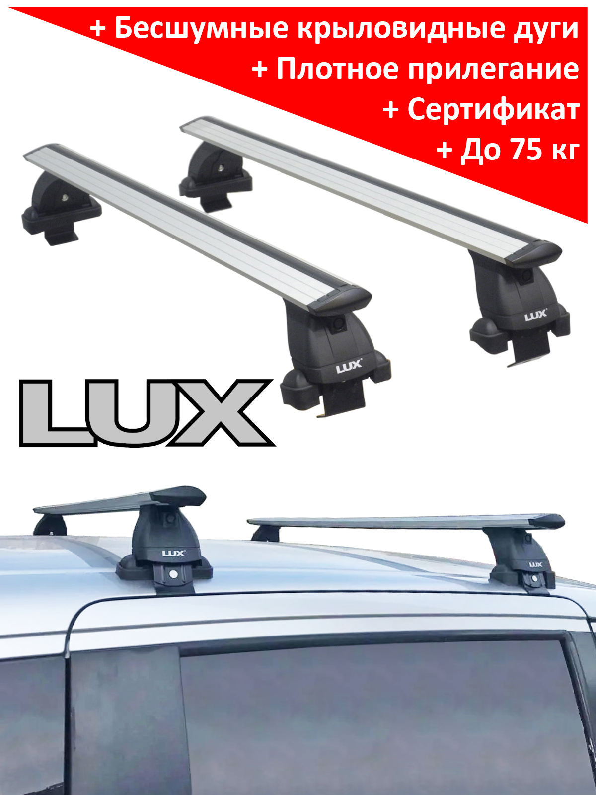 Багажная система Lux - это простая, но надежная конструкция, состоящая из трех основных частей: дуг, опор и адаптеров. Профиль дуги - аэродинамический, крыловидный, материал - анодированный алюминий, цвет - серебристый, длина 1400 мм, ширина - 82 мм. Поверх дуги проходит Т-образный профиль, предназначение которого - легкая и быстрая установка дополнительного оборудования - велокреплений, лыжный насадок. В свободном состоянии Т-профиль закрывается черным резиновым уплотнителем. На концах дуг располагается пара оригинальных заглушек, имеющих отодвигающийся лючок для доступа к Т-профилю. Дуги опираются на 4 стойки, производимые из прочного пластика. В качестве дополнительной опции возможна установка на крышки опор металлических замков Lux. Фиксация на крыше производится с помощью системы адаптеров за дверной проём.
