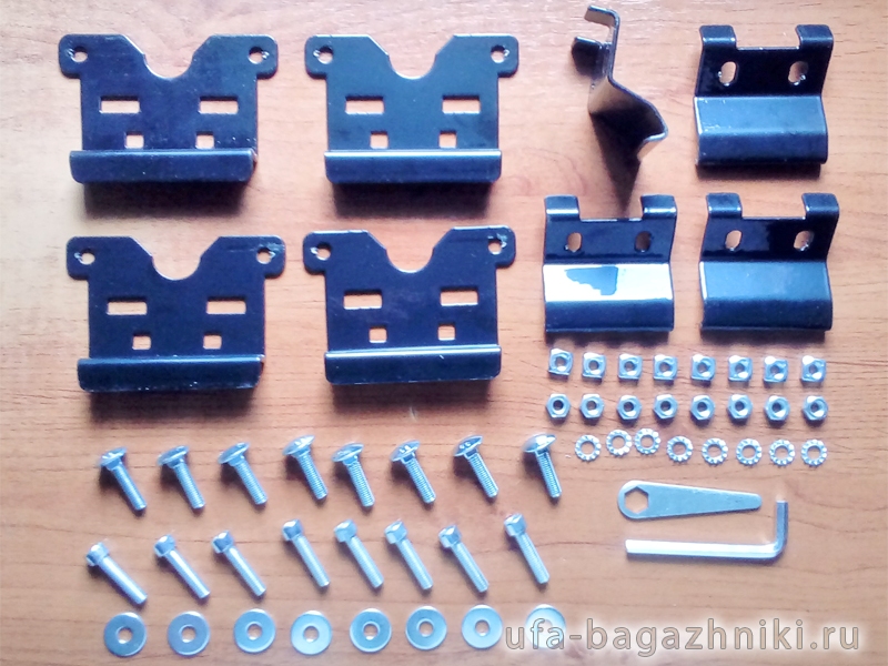 Оригинальные опоры багажника БК-2 изготавливаются из прочного композитного материала, их высота составляет 9 см. Крышки опор закрываются на пластиковые замки (можно заменить на номерные металлические замки). Установка опор на крышу производится при помощи металлических прижимов, обхватывающих рейлинг с внутренней и наружной стороны, что обеспечивает надежную посадку всей багажной системы.