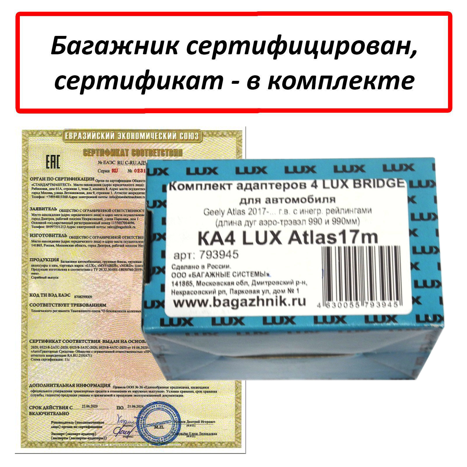 Установка багажника на интегрированные рейлинги производится согласно прилагаемой инструкции. Купить багажник на Geely Atlas марки Lux вы можете в нашем интернет-магазине "Багажники". Доставка по России.