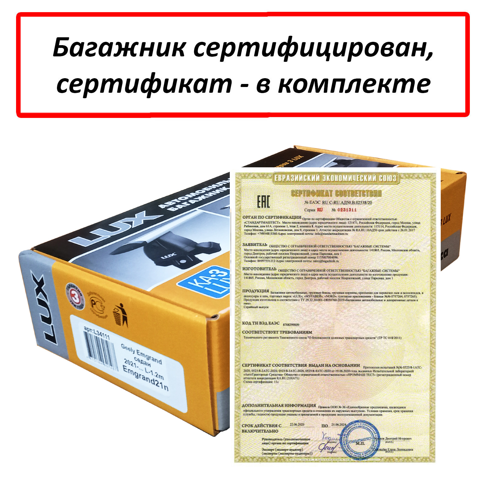 Представляем багажную систему Lux City на крышу Geely Emgrand (седан, 2021-…) от российского производителя - марки "Lux". Цвет дуг - серебристый.