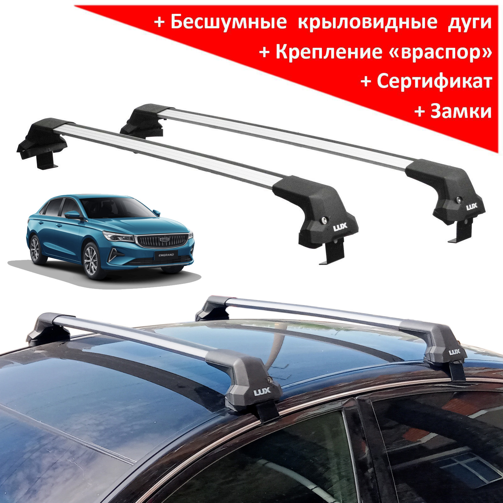 Багажник на крышу Geely Emgrand (седан, 2021-…), Lux City (без выступов), с замком, серебристые крыловидные дуги