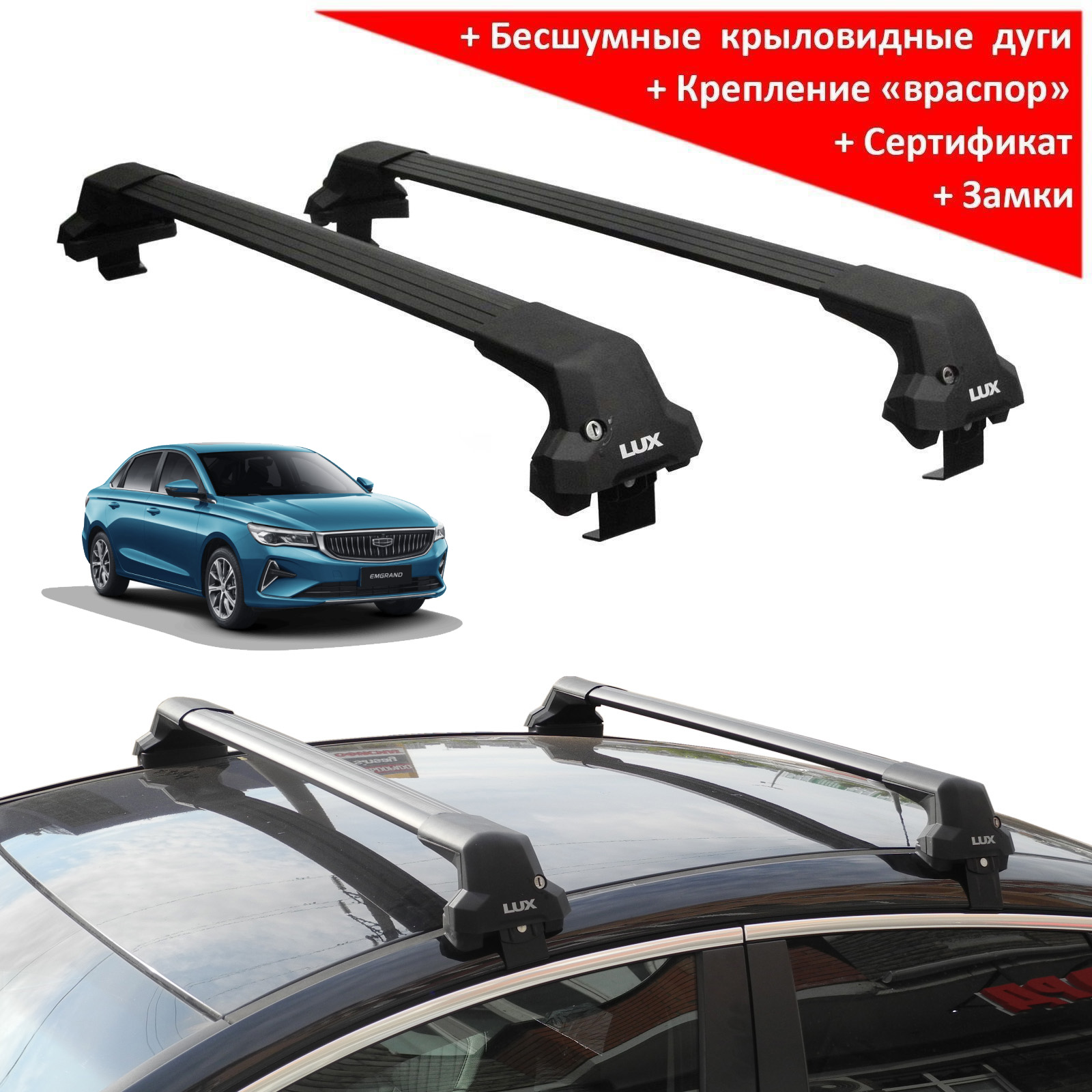 Багажник на крышу Geely Emgrand (седан, 2021-…), Lux City (без выступов), с замком, черные крыловидные дуги