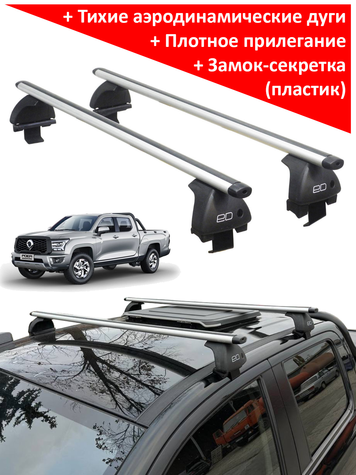 Автобагажник на крышу автомобиля Great Wall Poer / King Kong - ЕД (Россия), аэродинамические дуги. Грузоподъемность до 75 кг
