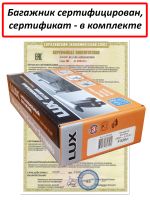 Багажная система Lux - это простая, но надежная конструкция, состоящая из трех основных частей: дуг, опор и адаптеров. Профиль дуги - аэродинамический, материал - анодированный алюминий, цвет - серебристый, длина 1200 мм, ширина - 53 мм. Поверх дуги проходит Т-образный профиль, предназначение которого - легкая и быстрая установка дополнительного оборудования - велокреплений, лыжный насадок. В свободном состоянии Т-профиль закрывается черным резиновым уплотнителем. На концах дуг располагается пара заглушек. Дуги опираются на 4 стойки, производимые из прочного пластика. Фиксация на крыше производится с помощью системы адаптеров за дверной проём.