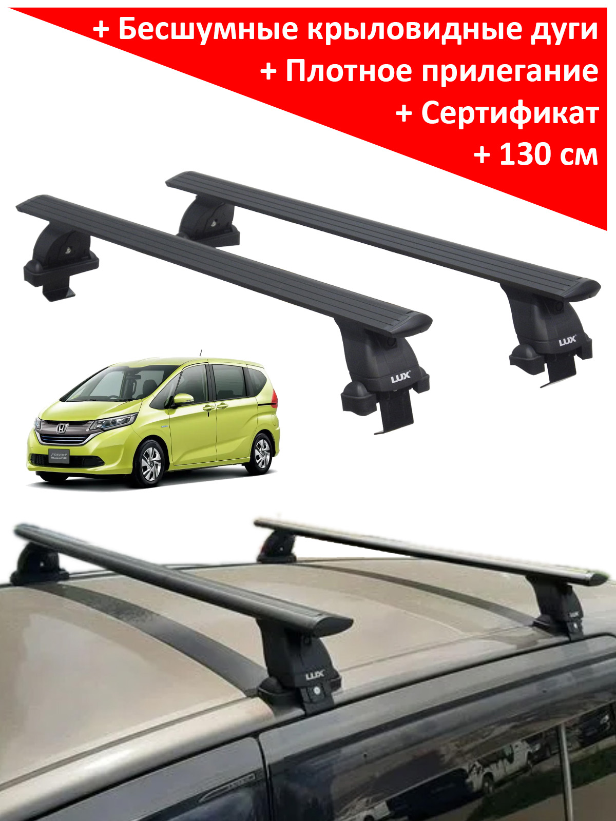 Автобагажник на крышу автомобиля Honda Freed 2 (2016-...) - Lux (Россия), крыловидные дуги черного цвета (аэро-трэвэл 82 мм). Грузоподъемность до 75 кг