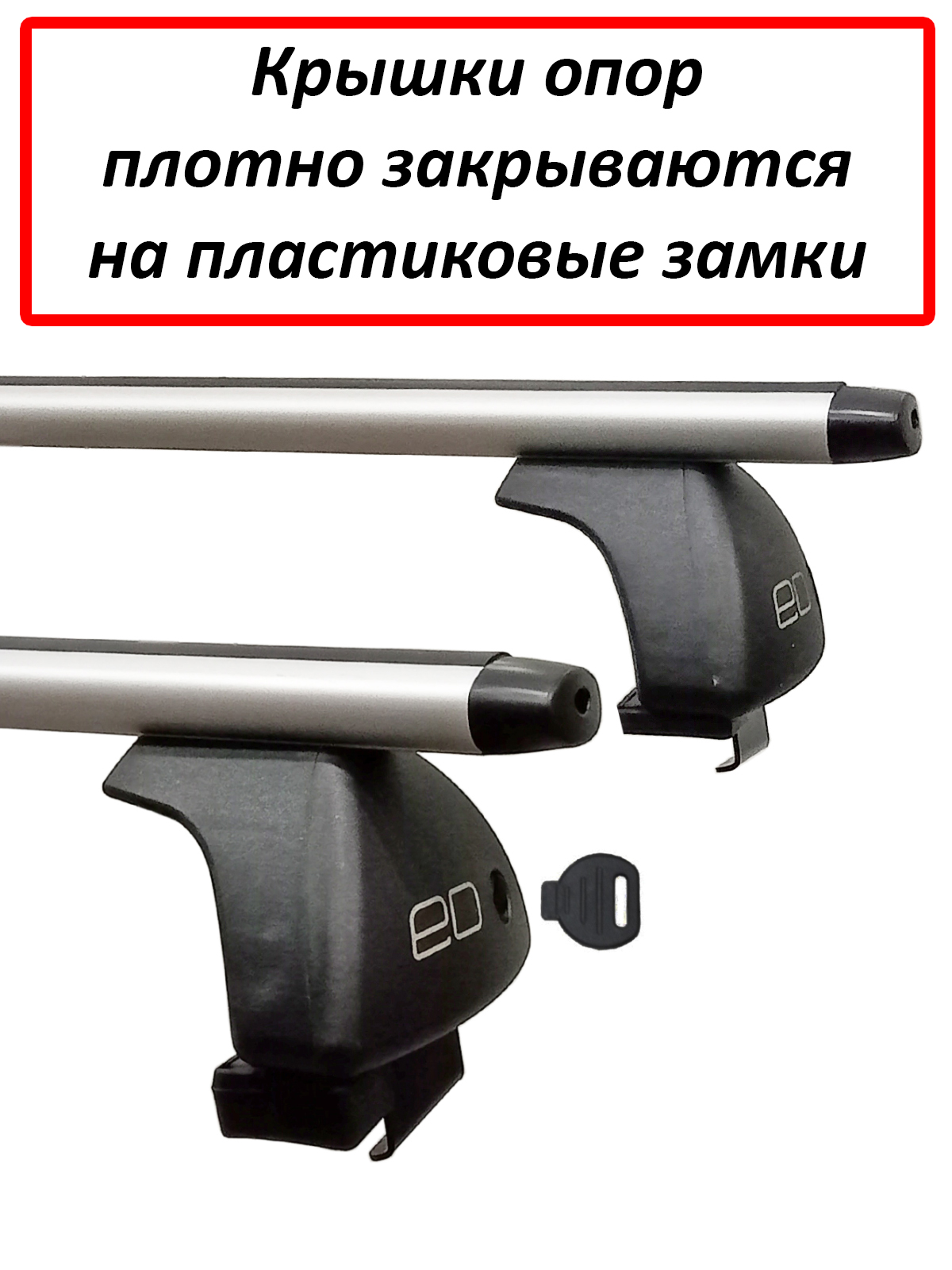 Багажная система ЕД - это простая, но надежная конструкция, состоящая из трех основных частей: дуг, опор и адаптеров. Профиль дуги - аэродинамический, материал - анодированный алюминий, цвет - серебристый, длина 1350 мм. Поверх дуги проходит Т-образный профиль, предназначение которого - легкая и быстрая установка дополнительного оборудования - велокреплений, лыжный насадок. В свободном состоянии Т-профиль закрывается черным резиновым уплотнителем. На концах дуг располагается пара заглушек. Дуги опираются на 4 стойки, производимые из прочного пластика. Крышки плотно закрываются на пластиковый замок (Дополнительная опция - металлические замки ). Фиксация на крыше производится с помощью системы адаптеров в штатные места.