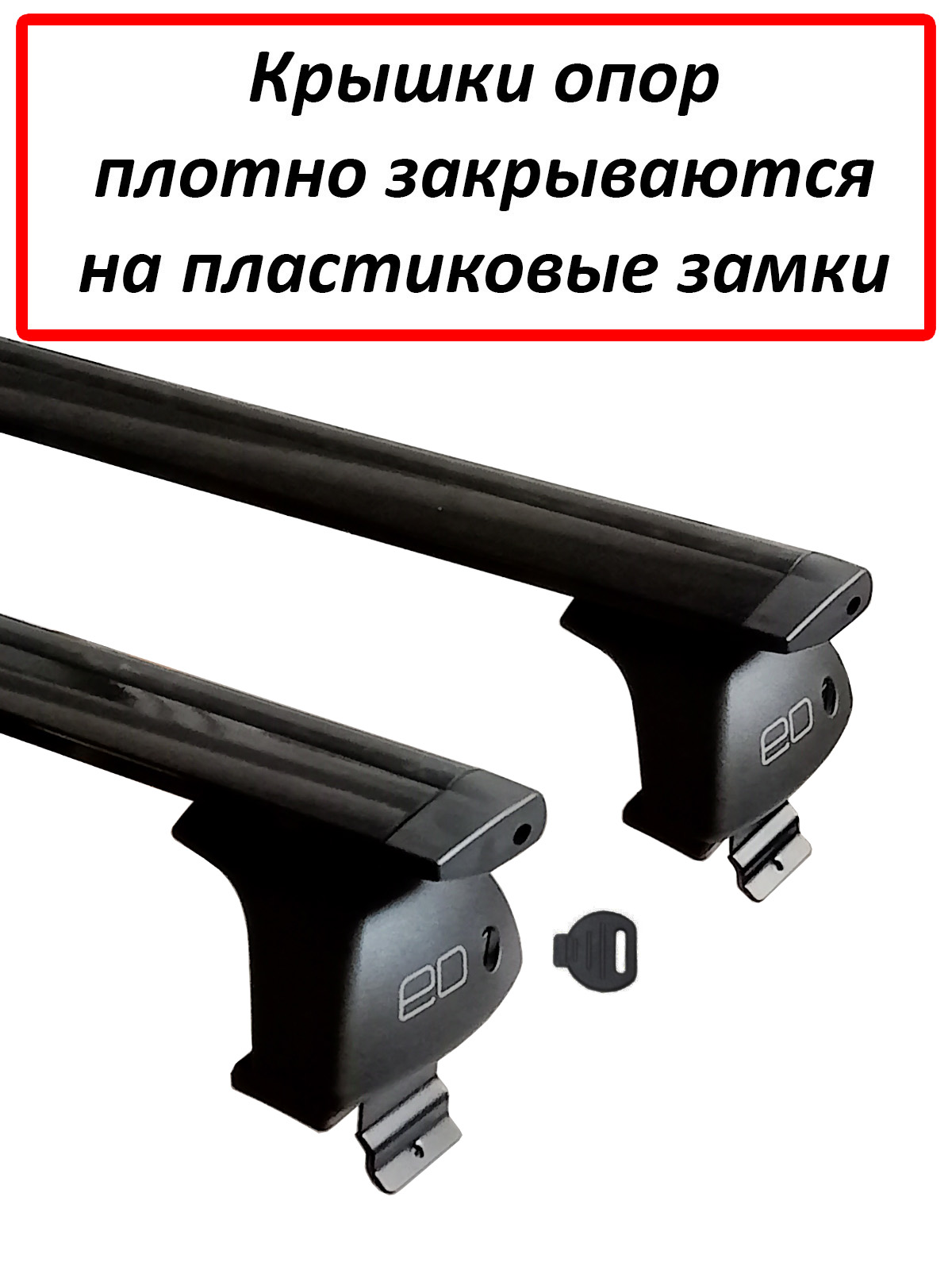 Багажная система ЕД - это простая, но надежная конструкция, состоящая из трех основных частей: дуг, опор и адаптеров. Профиль дуги - крыловидный (ширина 80 мм), материал - анодированный алюминий, цвет - черный (окрашенный), длина 1350 мм. Поверх дуги проходит Т-образный профиль, предназначение которого - легкая и быстрая установка дополнительного оборудования - велокреплений, лыжный насадок. В свободном состоянии Т-профиль закрывается черным резиновым уплотнителем. На концах дуг располагается пара заглушек. Дуги опираются на 4 стойки, производимые из прочного пластика. Крышки плотно закрываются на пластиковый замок (Дополнительная опция - металлические замки). Фиксация на крыше производится с помощью системы адаптеров за дверной проём. Для дополнительной надежности в прижимах есть штырь, который заводится в штатное отверстие в дверном проеме.