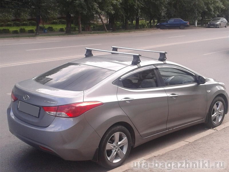 Автобагажник Атлант (Россия) на крышу Hyundai Elantra 5 (2010-...), с аэродинамическими дугами. Грузоподъемность до 75 кг (до 120 кг распределенной нагрузки)