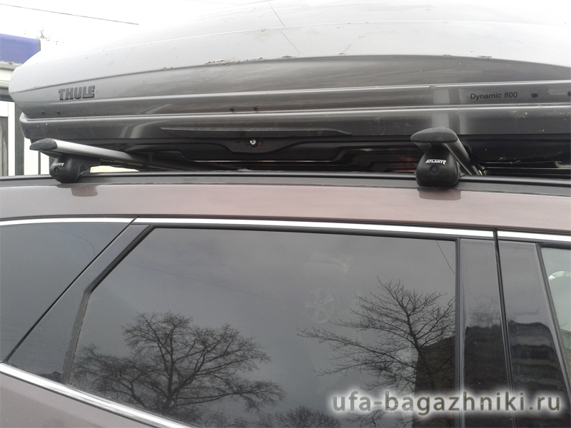 Багажник на крышу Hyundai Santa Fe 2012-..., крыловидные дуги на интегрированные рейлинги, Атлант