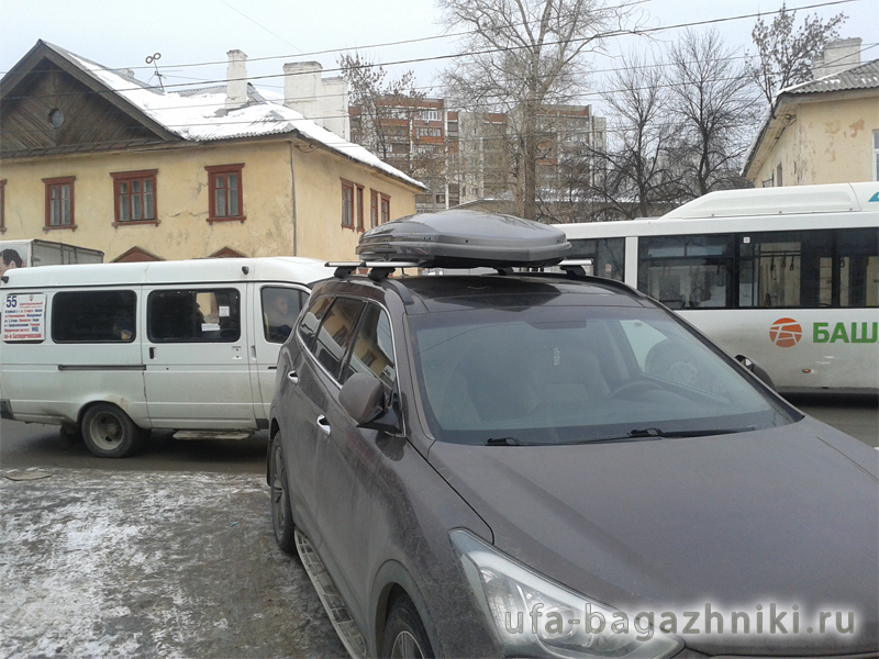 Для перевозки длинномерных, габаритных и нестандартных грузов на своем автомобиле используйте возможности верхнего багажника. Мы представляем багажник на Hyundai Santa Fe марки Атлант (Россия), с крыловидными аэродугами и аэродинамическими опорами типа Е. Багажник предназначен для установки на модель с интегрированными рейлингами. Рекомендуемая нагрузка - до 75 кг, при этом сами дуги выдерживают до 120 кг распределенной нагрузки.