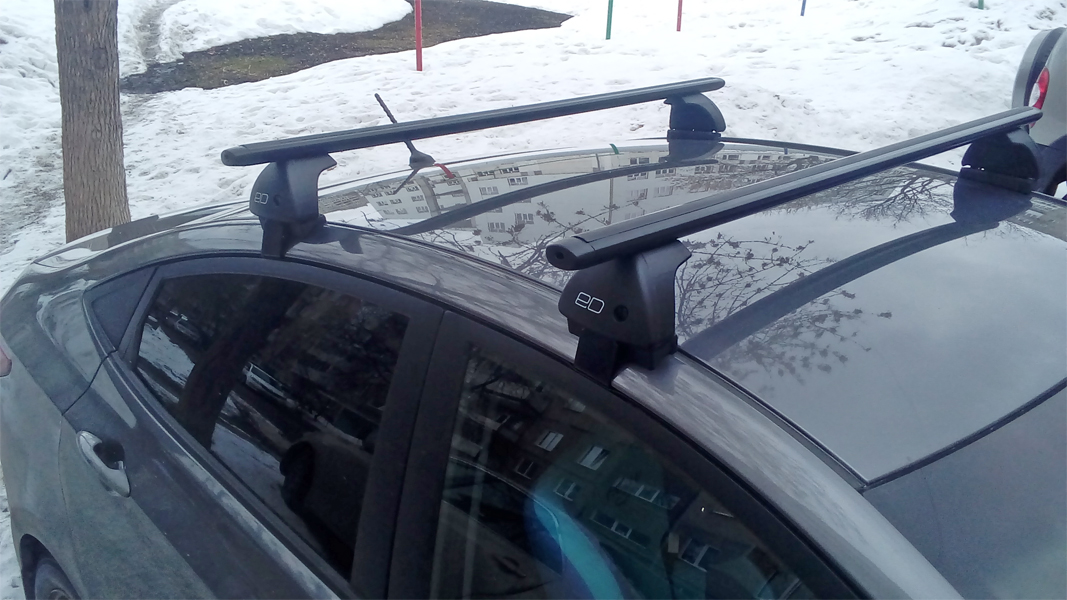 Автобагажник на крышу автомобиля Hyundai Solaris 2011-17 sedan - Евродеталь (Россия), аэродинамические дуги черного цвета. Грузоподъемность до 75 кг.