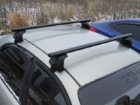 Багажник на крышу Hyundai Sonata седан 1998-2011г IV (EF), Евродеталь, аэродинамические дуги (черный цвет)