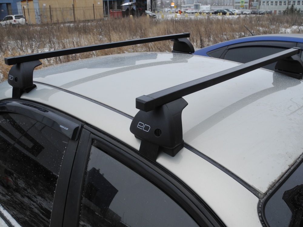 Багажник на крышу Hyundai Sonata седан 1998-2011г IV (EF), Евродеталь, стальные прямоугольные дуги