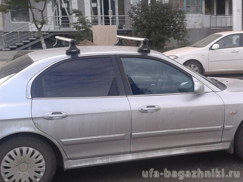 Автобагажник на крышу Hyundai Sonata 5, Атлант (Россия) с аэродинамическими дугами. Грузоподъемность до 75 кг (до 120 кг распределенной нагрузки)