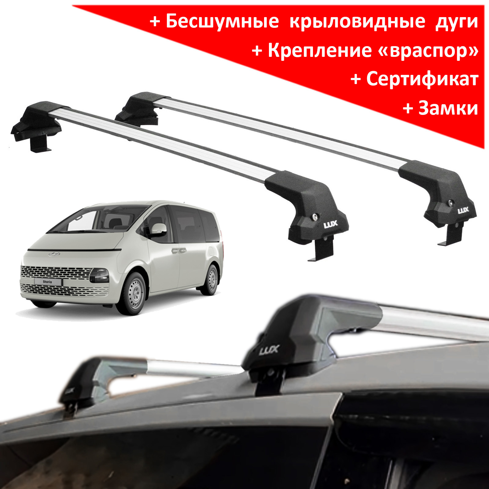 Багажная система Lux City для Hyundai Staria (2021-...) (враспор, без вылетов), производство - Lux (Россия, Москва). Серебристые дуги. Грузоподъемность до 75 кг