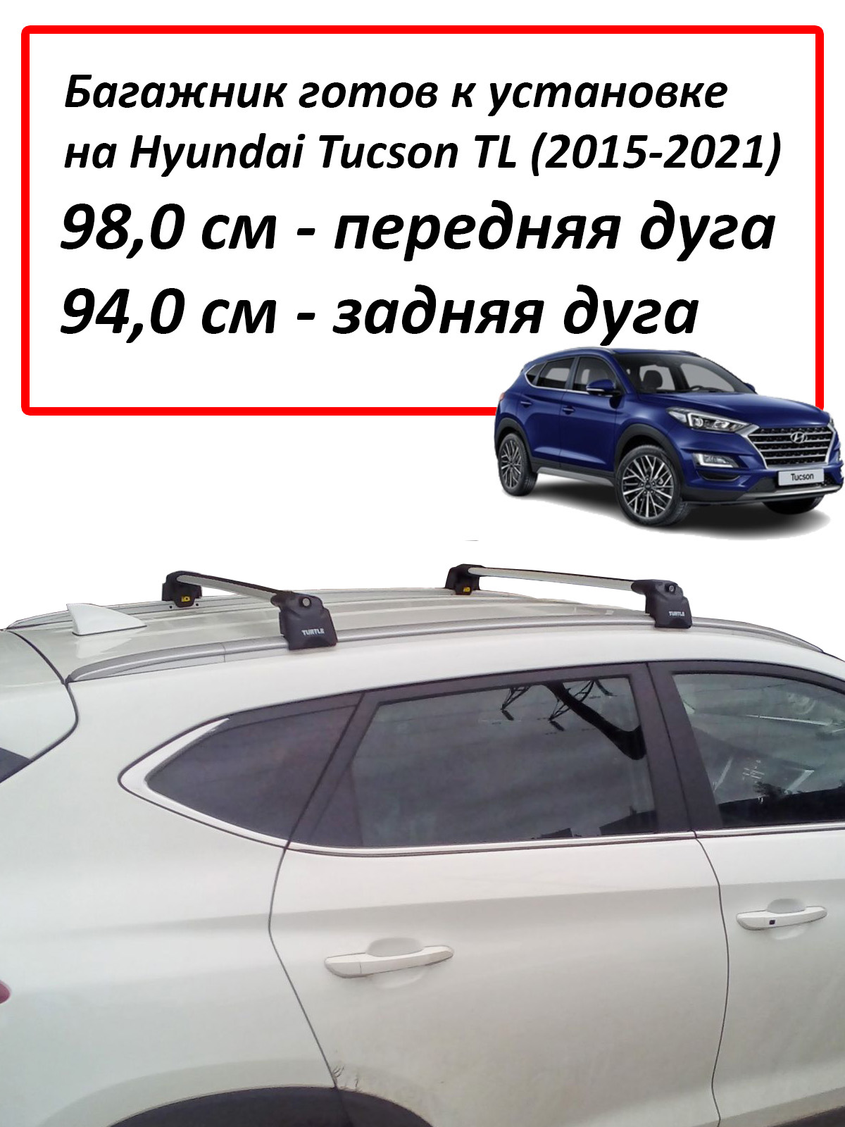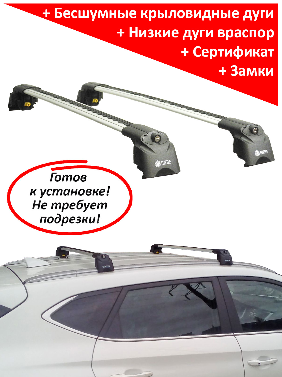 Багажник на крышу Hyundai Tucson 2015-2021, Turtle Air 2, аэродинамические дуги на интегрированные рейлинги (серебристый цвет)