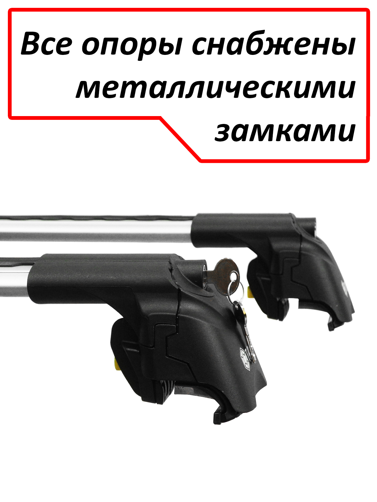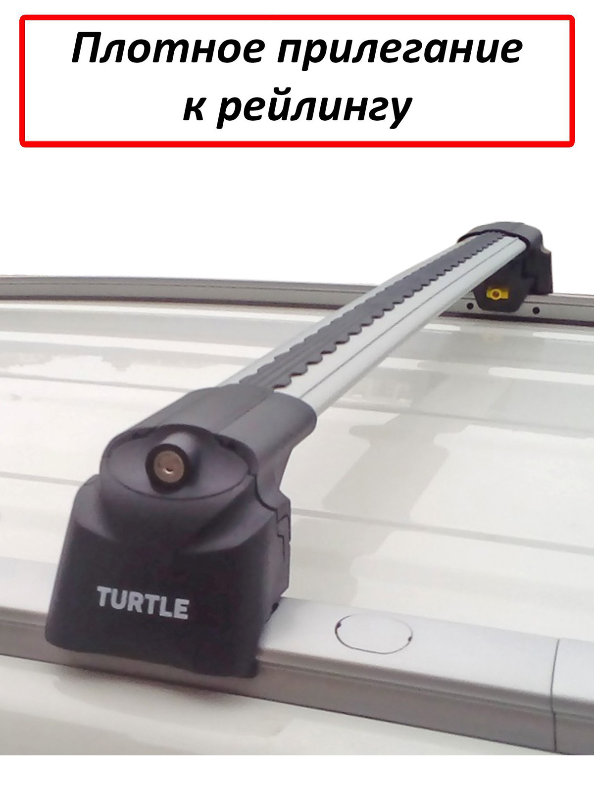 Универсальный багажник на интегрированные рейлинги Turtle Air 2 (Турция), без вылетов, с аэродинамическими дугами серебристого цвета. Грузоподъемность - до 75 кг.