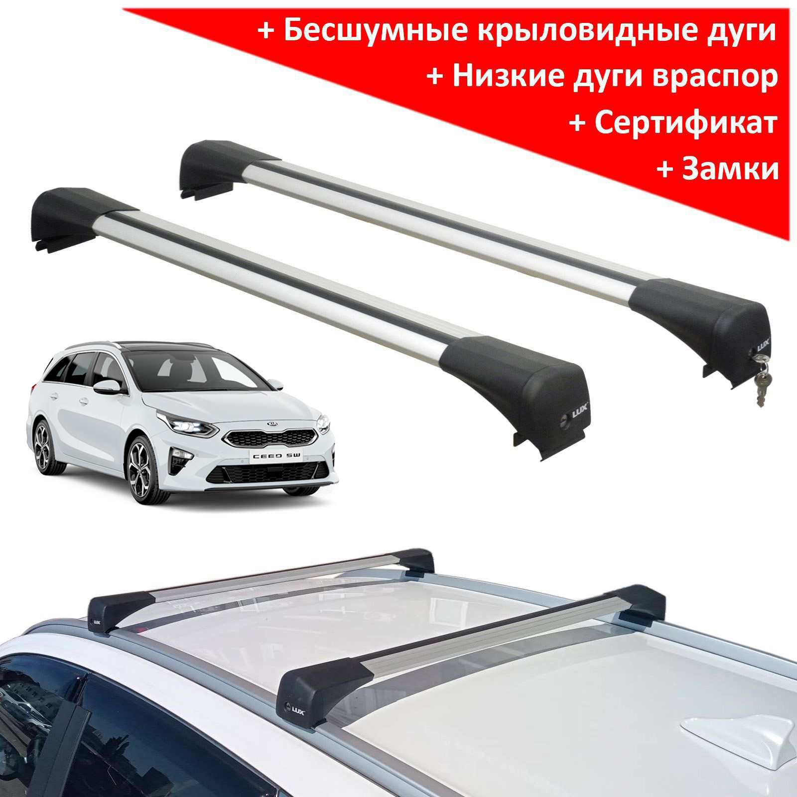 Багажник на крышу Kia Ceed sw (2018-...), Lux Bridge, крыловидные дуги (серебристый цвет)