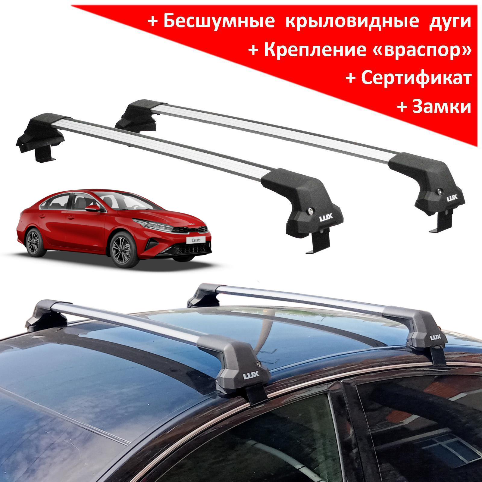 Представляем багажную систему Lux City на крышу Kia Cerato BD 2018-..., sedan от российского производителя - марки "Lux". Цвет дуг - серебристый.