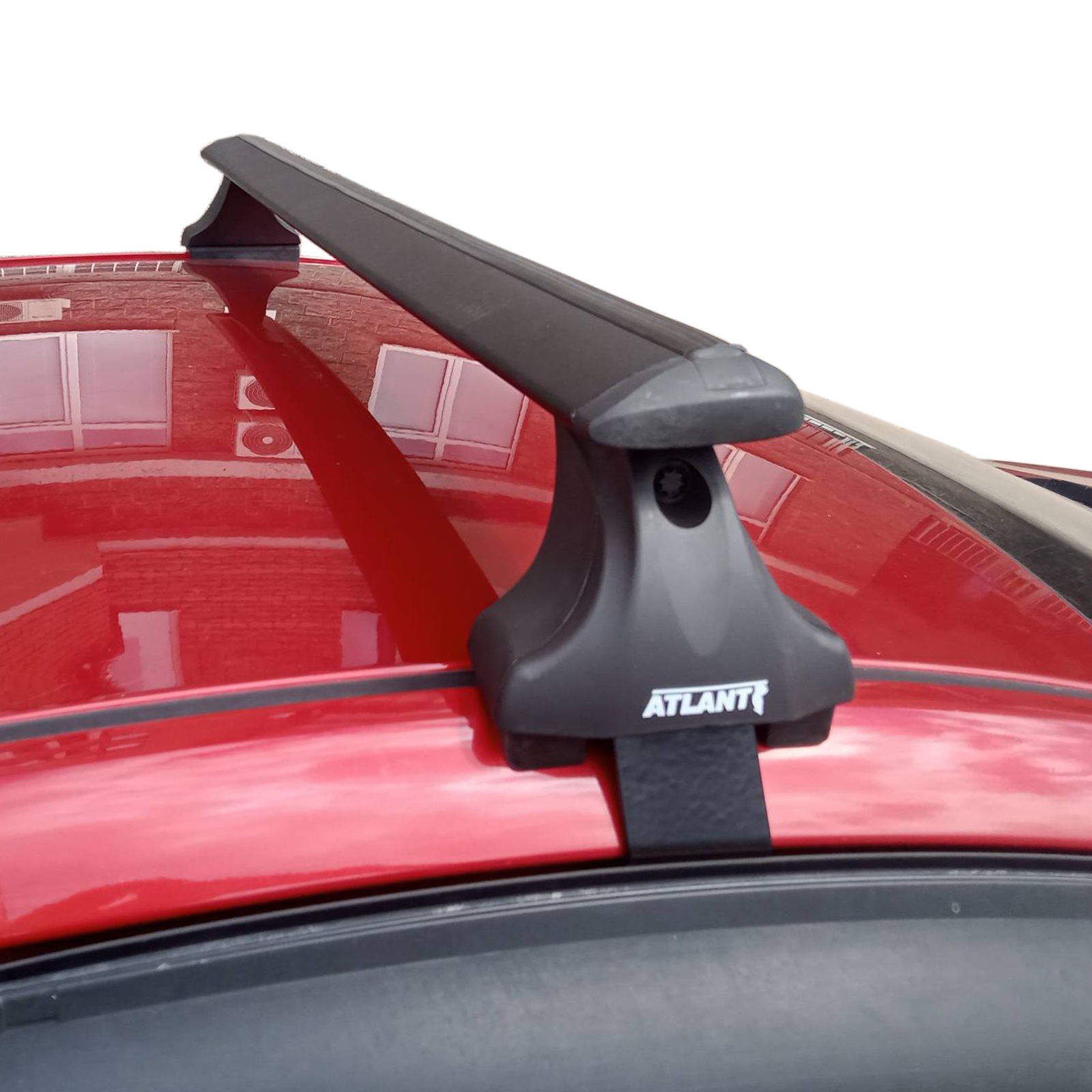 Автобагажник на крышу Kia Rio 2011-17, Атлант (Россия), с крыловидными аэродугами черного цвета и опорами типа E. Грузоподъемность до 75 кг (до 120 кг распределенной нагрузки)