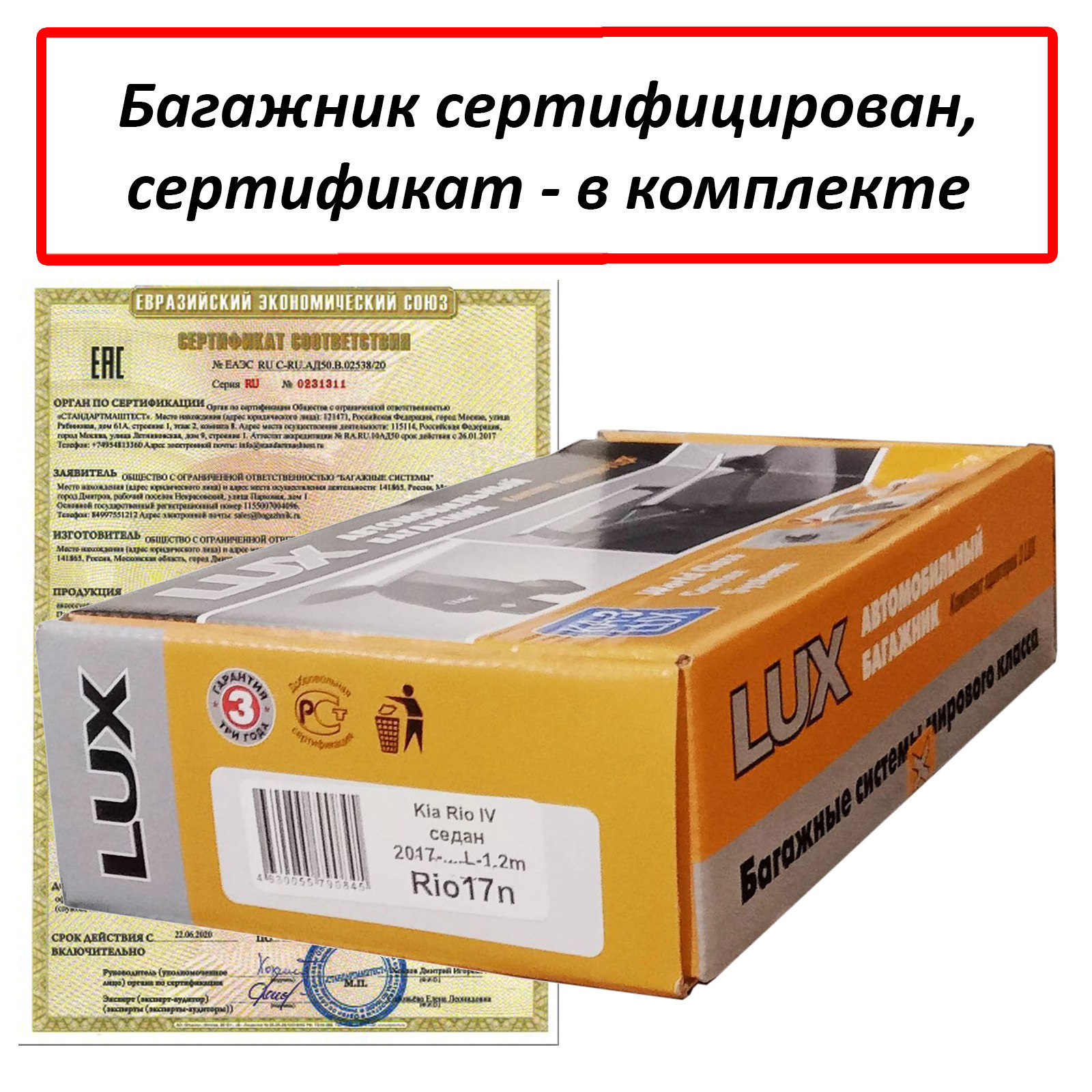 Представляем багажную систему Lux City на крышу Kia Rio 4 (2017-..., sedan) от российского производителя - марки "Lux". Цвет дуг - серебристый.