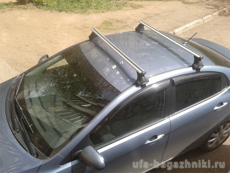 Багажник на крышу Kia Rio (c 2011г, sedan/hatchback), Атлант c аэродинамическими дугами. Грузоподъемность до 75 кг (до 120 кг распределенной нагрузки)