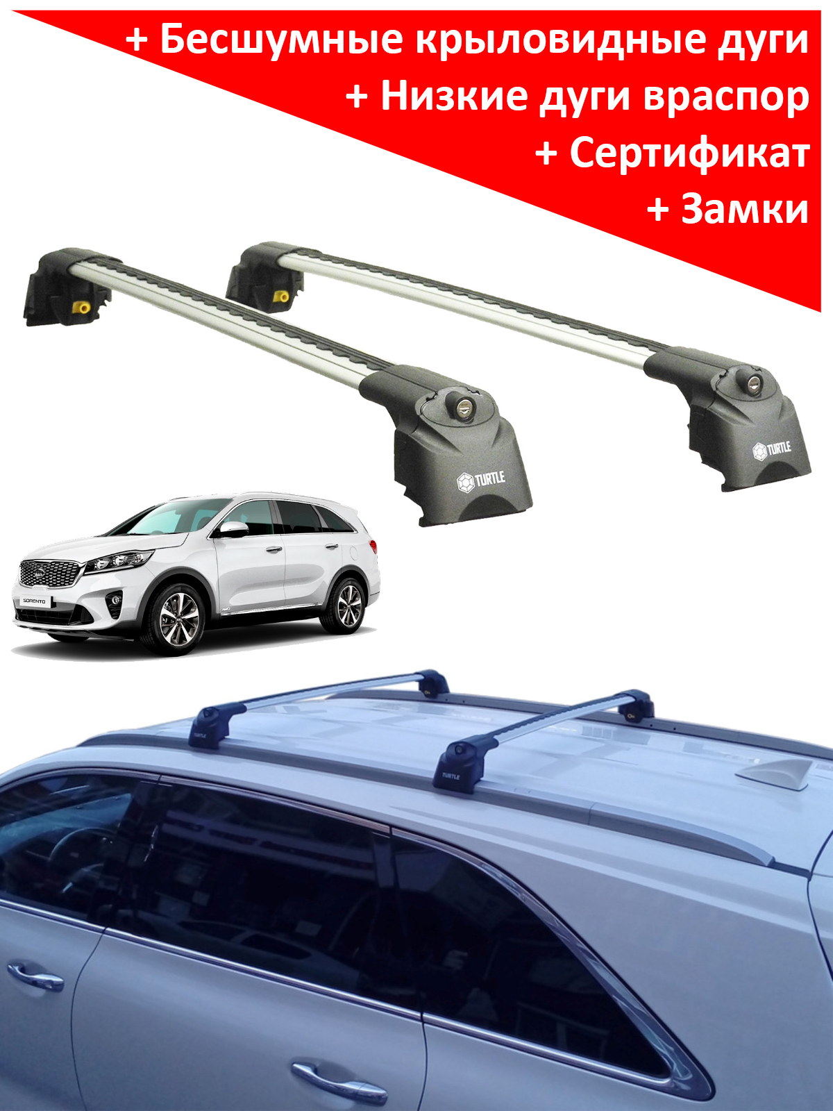 Багажник на крышу Kia Sorento Prime 2016-..., Turtle Air 2, аэродинамические дуги на интегрированные рейлинги (серебристый цвет)