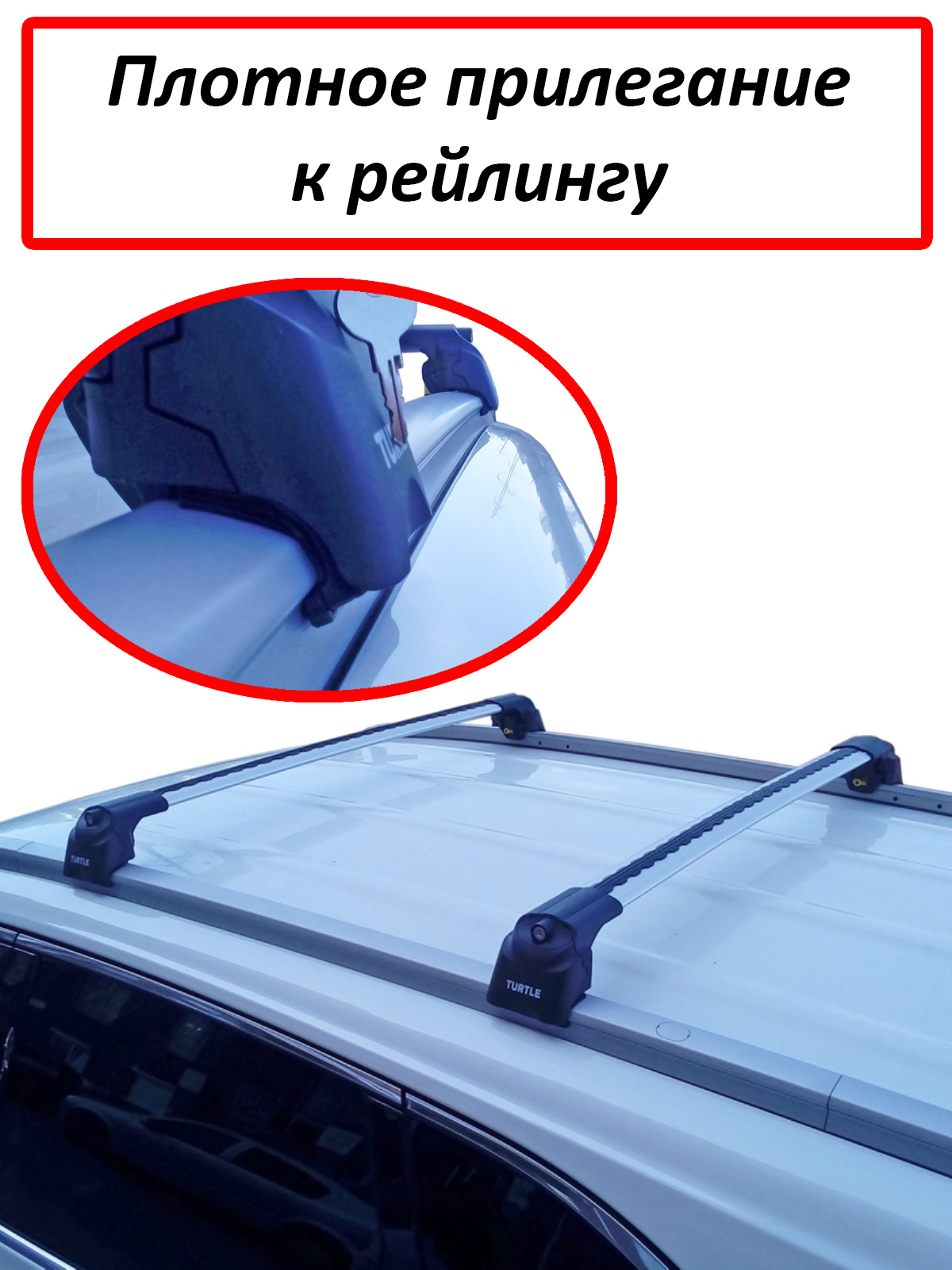 Багажник на интегрированные рейлинги Turtle Air 2 (Турция), без вылетов, с аэродинамическими дугами серебристого цвета. Грузоподъемность - до 75 кг.