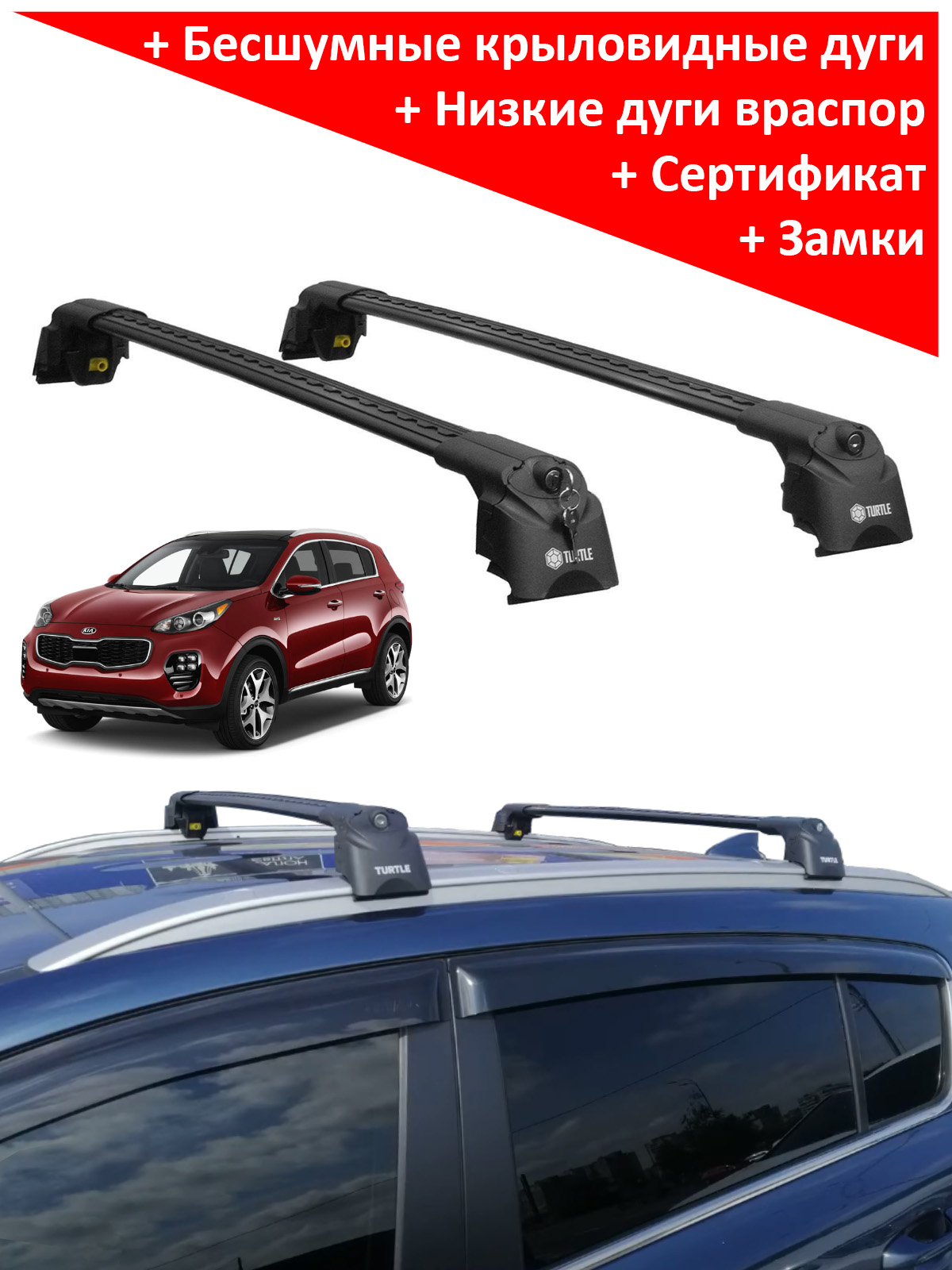Багажник на крышу Kia Sportage 4, Turtle Air 2, аэродинамические дуги на интегрированные рейлинги (черный цвет)