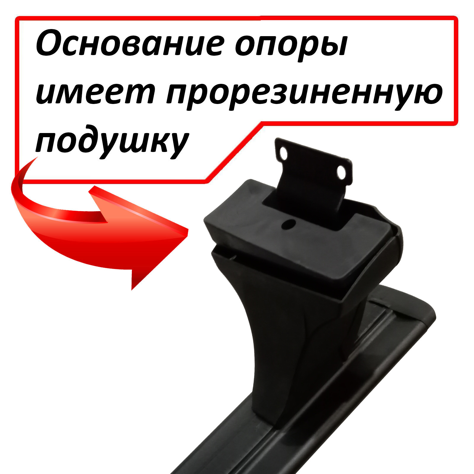 В основе багажной системы находятся 2 поперечные дуги крыловидной формы, изготовленные из алюминиевого профиля, черного цвета, длиной 1100 мм. Ширина дуг составляет 8 см, на концах располагаются черные пластиковые заглушки. Дуги имеют дополнительный функционал, в них закрепляются аксессуары: лыжные насадки, велокрепления, грузовые фиксаторы – для этого служит специальный Т-образный слот, расположенный в верхней части дуги. В свободном состоянии Т-слот закрывается резиновым уплотнителем. Толщина стенок дуги составляет 2 мм, есть также внутренние ребра жесткости, обеспечивающие надежность и прочность конструкции.
