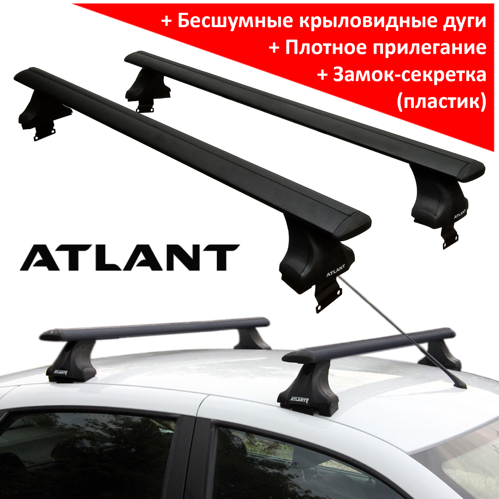 Багажник на крышу Лада Гранта (седан / хэтчбек / лифтбек), Атлант, крыловидные дуги (черный цвет), опора Е